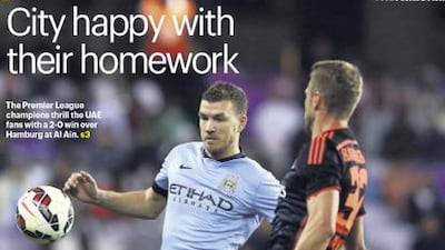 The National’s Sport cover for the Thursday, January 22 issue, featuring Manchester City and their 2-0 international club friendly win over Hamburg on Wednesday in Al Ain.