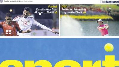 Day 1 of the Australian Open is the lead story in The National Sport front page on Tuesday, January 19 as the 'Big Guns' progressed to the second round.