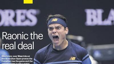 The National’s Sport cover for the Tuesday, January 26 issue, featuring Milos Raonic as he reached the Australian Open quarter-finals.