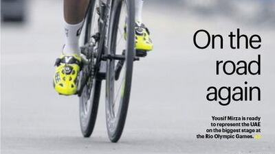 UAE cycling star Yousif Mirza features on The National Sport front page on Tuesday, August 2 ahead of the start of the 2016 Olympic Games in Rio de Janeiro.