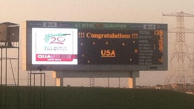 He had one more single in him (giving him exactly the half-century he finished with), and suddenly the US needed just four from two deliveries. On the penultimate ball, Santhanam drove a boundary backwards of point. America won.