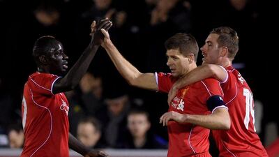Images from Monday night's 2-1 win for Liverpool over AFC Wimbledon in the FA Cup third round. Steven Gerrard scored both goals for the Premier League visitors, one off a header and one on a patented curling free kick, to hold off a valiant challenge from the fourth-tier League Two club. Click the arrows above to scroll through the photos.
