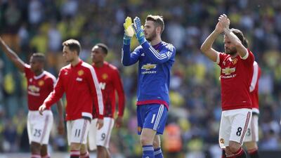 Leicester City may be Premier League champions, Aston Villa may have said "goodbye" long ago, but there is still plenty to be decided in terms of who makes up the top four and which teams will be playing in the Championship next season. West Ham United's hopes of qualifying for the Uefa Champions League next term were dented by a humiliating 4-1 defeat at home to Swansea City on Saturday, while fifth-place Manchester United boosted their chances of usurping rivals Manchester City for the coveted fourth spot by beating Norwich City 1-0 away. West Ham and United clash on Tuesday at Upton Park in a 10.45pm UAE kick off. On Wednesday, Sunderland have the chance to secure their top-flight status if they can beat a horribly out-of-sorts Everton at the Stadium of Light (10.45pm), while Norwich City will be condemned to relegation if they fail to beat Watford at home (10.45pm).