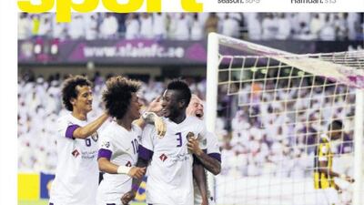 The National's Sport cover for the Wednesday, August 20 issue, featuring UAE club Al Ain, out to a 2-0 lead after the first leg of their quarter-final tie with Saudi side Al Ittihad in the Asian Champions League.