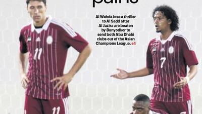 Dejected Al Wahda players feature on The National Sport front page on Wednesday, February 18 after their defeat to Al Sadd in the AFC Champions League play-off.