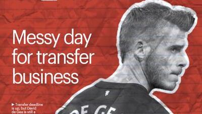 The National’s Sport cover for the Wednesday, September 2 issue, featuring David de Gea, as the fallout from his transfer saga dominated a relatively quiet deadline day.