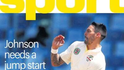 The National’s Sport cover for the Wednesday, October 29 issue, featuring Australia paceman Mitchell Johnson, who had a good but not great first Test against Pakistan in Dubai.