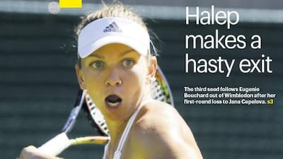 The National’s Sport cover for the Wednesday, July 1 issue, featuring Simona Halep as the third seed crashed out of the Wimbled in first round.