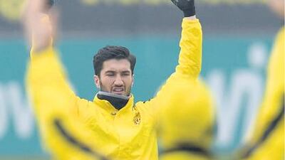 Borussia Dortmund midfielder Nuri Sahin warms up on Wednesday's Sport cover of The National during a training session in Dortmund ahead of his club's crucial second-leg Uefa Champions League meeting with Benfica.