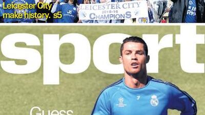 Cristiano Ronaldo makes the front cover of The National Sport on Wednesday, May 4, 2016 as the Portuguese forward took part in Real Madrid's final training session ahead of their Uefa Champions League semi-final second-leg clash with Manchester City on Wednesday.