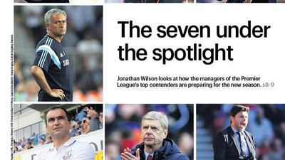 The Sport front page of The National on Wednesday, August 13, 2014, features how the subplots for the next season in the English Premier League revolve around how managers will handle their team.