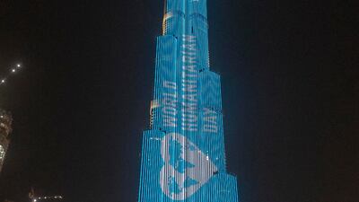 The Burj Khalifa lit up to mark World Humanitarian Day on Thursday.