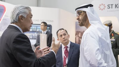 Sheikh Mohammed bin Zayed, Crown Prince of Abu Dhabi and Deputy Supreme Commander of the UAE Armed Forces, meets representatives from participating countries at the International Defence Exhibition and Conference in the capital.
