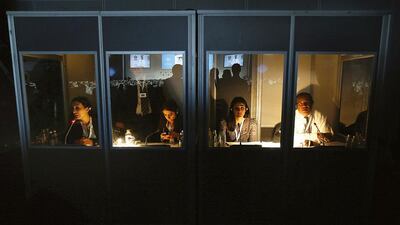 If you spend any time in the UAE, sooner or later you’ll find yourself at one large conference or another, listening to speakers and panel discussions and finding your way around the seemingly endless floor displays in the exhibition halls. However, tucked away in a dark corner of the conference theatres, you’ll find a small box, the translators’ booth. Staff photographer Pawan Singh captured a rather intriguing image of the translators at a recent conference in Dubai, working, waiting and listening in the little room in the dark.