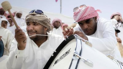 With the local football season winding down, I'm reminded of this wonderful moment captured by Razan Alzayani at a recent game between Al Wahda and Al Shabab. Good fans can be as entertaining as the game itself sometimes and Razan captured a series of great fan pictures on the day. In this particular frame, I love the contrast between the two men - with one happily banging a drum while the other tunes everything out to focus on tying a knot.