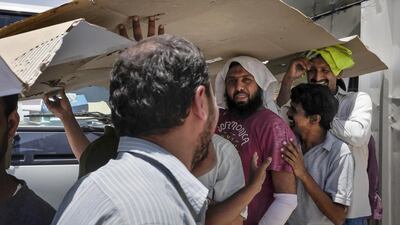 And when naturally occurring shade isn’t available, a little teamwork and creativity can go a long way, as shown by staff photographer Antonie Robertson’s photograph of these men waiting to board a bus.