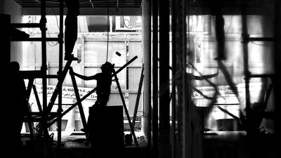 Looking through choices for this week, I was stopped dead by this image, taken during construction of a store in Dubai, for an unusual reason. It seems to wilfully deny the viewer's eye a point to lock on to; nothing is complete in this image, from the worker disappearing into the ceiling to the half-seen Sri Lankan flag in the background. Staff photographer Delores Johnson has added to this sense of jumble with the nice touch of the out-of-focus reflection on the right side of the frame.