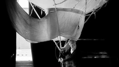 Staff photographer Antonie Robertson captured a quiet moment backstage with a technician holding a rope to a hot-air-balloon prop during a rehearsal in Dubai for Cirque du Soleil’s Varekai.