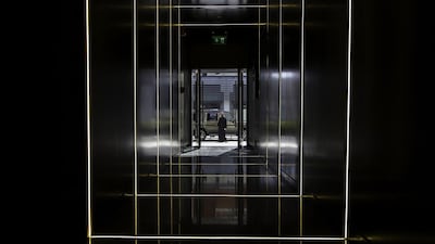 In this image taken by staff photographer Christopher Pike, rows of lights illuminating a hallway create an optical illusion, almost like a hall of mirrors, as an Emirati man waits for his car to be valet parked in Dubai.