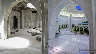 His brainwave was to revisit the mosque and photograph the now finished building from the same angles. It was, he admits, no easy task, because the interior had changed so much.