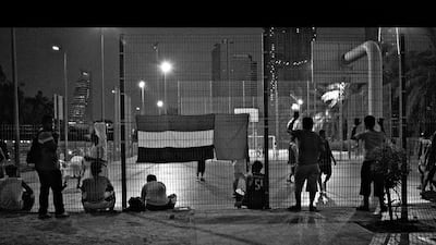 I came across the Jafiliya Basketball Court and its community entirely by accident whilst walking around the Satwa area shooting one evening. Two Filipino guys decked out in bright purple and yellow basketball jerseys - not the usual Satwa attire - casually walked out of their apartment building, they caught my eye and I followed them to the court. "You should come on Saturday night," they said, and so I did, actually I went for the next 5 or 6 Saturdays after that too.
