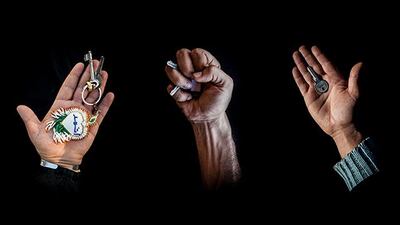 Bradley Secker - The idea came when I was thinking about what items people retained from their homes when they become refugees. I thought of the Palestinian Nakba keys as a point of reference and asked my Syrian housemate if he had his keys, he said yes, so I took a few frames of them. I realised that if I was going to make a series out of the images I’d have to have some stable elements, so the black background and the natural lighting were vital.