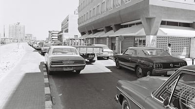 How long Abu Dhabi had to wait for proper parking system is illustrated in this photograph taken by an Al Ittiahad photographer in the early 1970s. It shows a pick-up truck making its way passed packed rows of parked cars, most likely on Hamdan Street. The population of the city in those days was well under 100,000 whereas today it is estimated at over one million and still rising. Given that the number of cars on the Emirate’s roads is now confirmed at 830,000, it is hard to imagine what life would be like without those now familiar blue and white striped bays.
