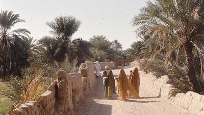 What is certain is that if the image was taken in Al Ain, it also contains the potential to mislead. The men’s clothing and mud brick walls may suggest that the area was a timeless place untouched by modernity.