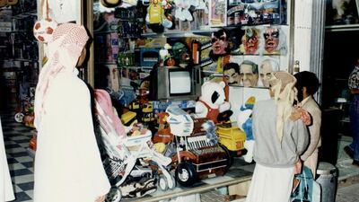 This image comes from the archives of Al Ittihad, our sister newspaper, and shows a popular toy shop in the souq. It is not dated, but there is a clue in the window - the masks of George Bush Senior, Mikhail Gorbachev (with his distinctive birthmark) and Saddam Hussein. This places the photo to around 1990 or 1991, when the looming Gulf War caused by the invasion of Kuwait meant the US, Soviet and Iraq leaders were daily in the news.