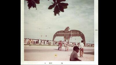 Mammootty has kindly offered to share some of his work. This is one of the earliest, a street side view of the celebration of National Day in 1975. This was the first such parade since the formation of the UAE in 1971. He recalls: “Spectators waiting to see the march-past, parade of various armed forces, cavalries and cultural tableaux.”