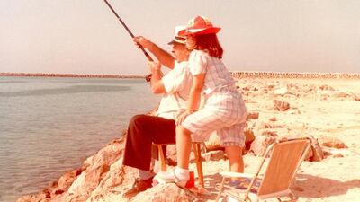 It could be any kid’s summer holiday, anytime, anywhere in the world. But the young girl staring out to sea as her grandfather casts his line in this treasured photograph is Melina Mitri – a reader, then aged 6 – fishing off Mina Zayed in Abu Dhabi in 1984.