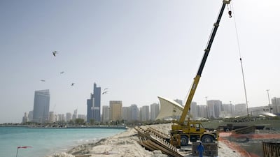 This photo from March 2008 shows the construction of the first official public beach on the Corniche. The 2km facility was free to use, cost Dh105 million and included a mosque, changing rooms, volleyball courts, refreshment areas and playgrounds, with a capacity for 5,000 beachgoers.