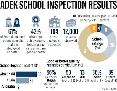 This week, Abu Dhabi’s department of education and knowledge (Adek) released the biennial Irtiqa’a Inspection Report that ranked four schools - Al Muna Academy, Raha International School, Merryland International School and Brighton College in Al Ain - in the top 'outstanding' rating.