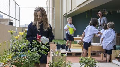 Early years pupils visit the Rooftop Mindful Garden at least twice a day to calm their minds and nurture plants as part of a health awareness programme the school is piloting with Sandy Seeds, a new company run by three mothers in the UAE.