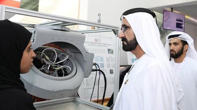 During his tour Sheikh Mohammed also inspected projects by students from UAE University, Khalifa University and Abu Dhabi Police, which were on display as part of UAE Innovation Week.
