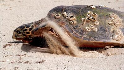 Almost 100 hawksbills have laid their eggs at the beach near the Al Taweelah site since 2011 and nearly 7,000 baby turtles have hatched during that time.