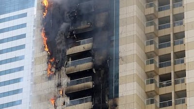 A fire broke out on the 35th floor of Sulafa Tower in Dubai Marina on Wednesday afternoon. Photos: Pawan Singh / The National