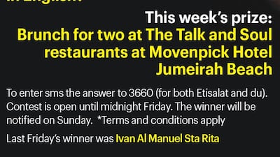 Simply SMS the answer to 3660 (for both Etisalat and du) to enter. The contest is open until midnight on Friday. The winner will be notified on Sunday.