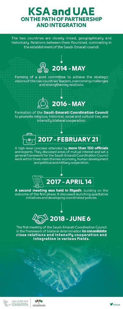 The UAE and Saudi Arabia took the first step to accelerate joint co-operation with the first meeting of the Saudi-Emirati Coordination Council in Jeddah.