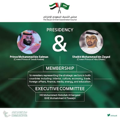 The meeting, chaired by Sheikh Mohammed bin Zayed, Crown Prince of Abu Dhabi and Deputy Supreme Commander of the UAE Armed Forces, and Mohammed bin Salman, Crown Prince of Saudi Arabia, outlined the council's organisational structure.