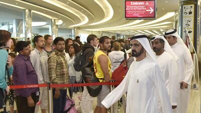 Passenger traffic at Dubai International Airport rose by 15 per cent in July compared with the same period last year, Sheikh Mohammed bin Rashid, Vice President and Ruler of Dubai was told yesterday. All photos by WAM