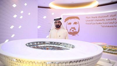 DUBAI // Sheikh Mohammed bin Rashid, Vice President and Ruler of Dubai, reviewed the design of a Dh3 billion stadium planned for Dubai.