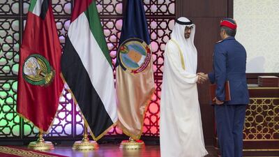 ABU DHABI // A graduation ceremony at National Defence College on Monday was attended by Sheikh Mohammed bin Rashid, Vice President and Ruler of Dubai, and Sheikh Mohammed bin Zayed, Crown Prince of Abu Dhabi and Deputy Supreme Commander of the Armed Forces.