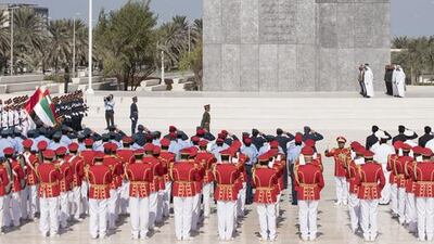 UAE Honour Guard participates in the flag raising ceremony at Wahat Al Karama. Mohamed Al Hammadi / Crown Prince Court - Abu Dhabi -
