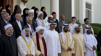 Sheikh Mohammed bin Zayed, Crown Prince of Abu Dhabi and Deputy Supreme Commander of the Armed Forces, hosted members of the Board of Trustees of the Forum for Promoting Peace in Muslim Societies, on Monday at Al Bahr Palace.
