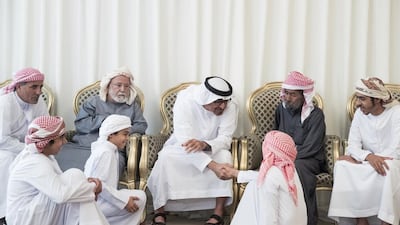 ABU DHABI // Sheikh Mohammed bin Zayed, Crown Prince of Abu Dhabi and Deputy Supreme Commander of the Armed Forces, paid his respects to the families of Ahmed Al Tunaiji and Ahmed Al Mazrouei on Wednesday.