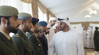 Sheikh Mohammed bin Zayed, Crown Prince of Abu Dhabi and Deputy Supreme Commander of the Armed Forces, and Sheikh Humaid bin Rashid, Ruler of Ajman, offered condolences to the family and relatives of Ali Mohammed Al Kaabi, who died in a military helicopter crash while on a routine mission on international waters.
