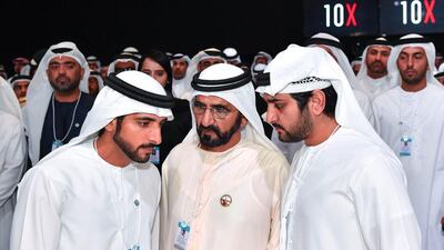 Sheikh Mohammed bin Rashid, Vice President and Ruler of Dubai, launches Dubai 10X at the World Government Summit on Tuesday. Wam -