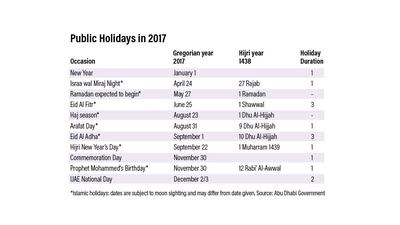 The Abu Dhabi Government has announced the list of public holidays planned for 2017.