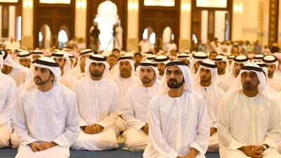 Sheikh Mohammed bin Zayed Al Nahyan, Crown Prince of Abu Dhabi and Deputy Supreme Commander of the Armed Forces, along with other sheikhs and ministers, offered Eid prayers at Sheikh Zayed Grand Mosque and also visited the tomb of the founding father of the UAE.